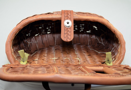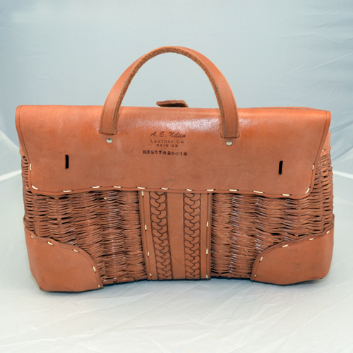 This is an old creel that has been cleaned and reshaped, then all new leather was put on it. As the creel itself is used, the condition can vary and there may be some minor damage to the willow so the photos you see are of the actual creel you would be purchasing.